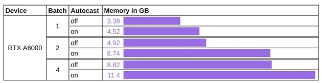 我們在 NVIDIA RTX A6000 上重現(xiàn)了該實(shí)驗(yàn),并能夠驗(yàn)證速度和內(nèi)存使用方面的性能提升。我們預(yù)計(jì)其他支持半精度的設(shè)備也會有類似的改進(jìn)。