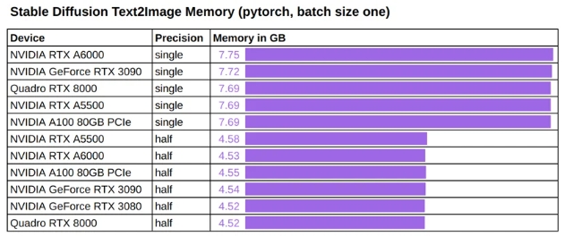 Stable Diffusion Text2Image 內(nèi)存 (GB)