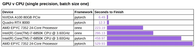 GPU 的速度明顯更快——根據(jù)精度,速度可提高一到兩個(gè)數(shù)量級。