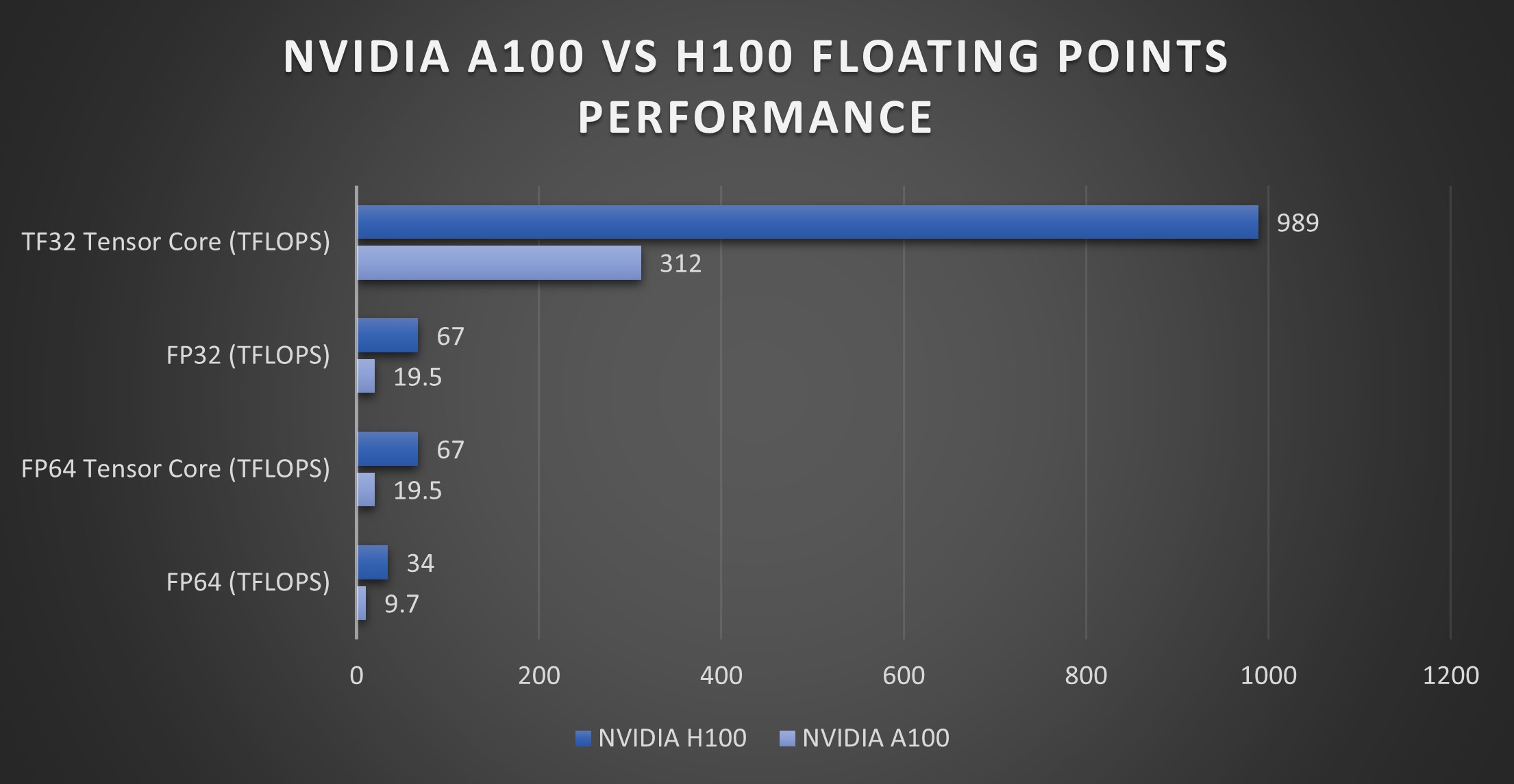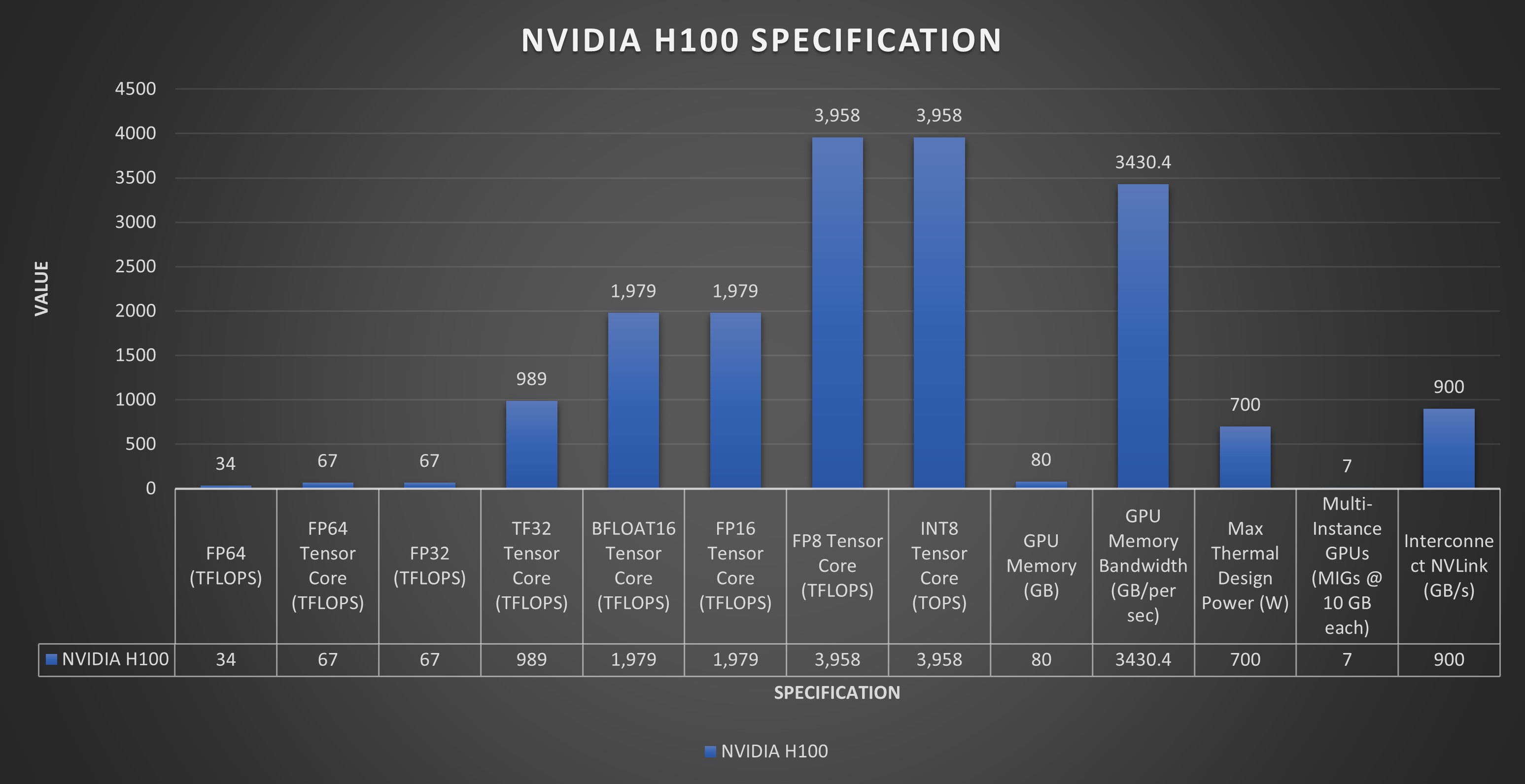 張量運(yùn)算對(duì)于 AI 計(jì)算至關(guān)重要,而 H100 的第四代 Tensor Core 預(yù)計(jì)將比前幾代產(chǎn)品實(shí)現(xiàn)大幅性能提升。這些進(jìn)步使 H100 成為一款功能極其強(qiáng)大的 AI 建模和深度學(xué)習(xí)工具,得益于大規(guī)模矩陣運(yùn)算和 AI 特定任務(wù)的效率和速度提升。