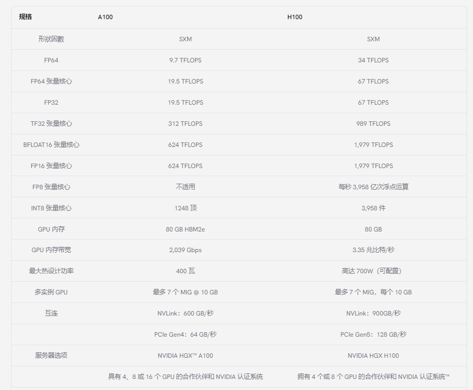 A100 和 H100 GPU 專為 AI 和 HPC 工作負(fù)載而設(shè)計(jì),由不同的架構(gòu)理念驅(qū)動(dòng)。以下是它們之間的比較: