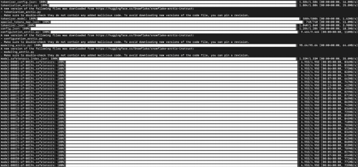 現(xiàn)在,當(dāng)您執(zhí)行 Python 腳本時(shí),我們可以看到正在下載模型權(quán)重。請(qǐng)注意,下載可能需要最多 20 分鐘才能完成。