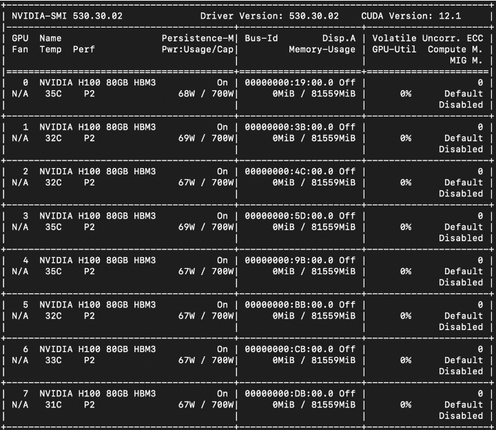 我們建議在 H100 GPU 上使用帶有 535 NVIDIA 驅(qū)動(dòng)程序的 Cuda 12.1。要將 Cuda 版本降級(jí)到 12.1,首先需要?jiǎng)h除現(xiàn)有的 12.4 版 Cuda。