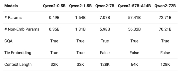 Qwen2 系列包括五種不同尺寸的基礎(chǔ)模型和指令調(diào)整模型